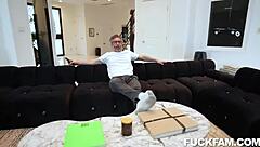 stepdad rips stepdaughter's shorts revealing wet tight pussy for juicy missionary creampie in dorm