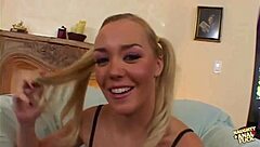 Blonde dancer on Mofozo loves doggy style pounding!