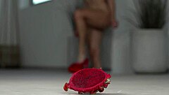 4k footfetish fruits crushed under bare feet high heels.