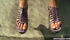 I picked up this hot latina teen in public for wet foot fetish action outdoors.