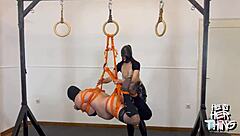 bound in shibari she dominates his mouth and ass with rough toys