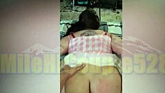 amateur pawg bends over as big pierced cock pounds her big booty then unloads on tongue