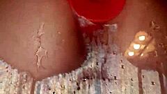 I stretch my tight ass with this huge dildo in the bath