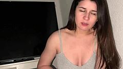 I'm spying on my horny brunette stepsister masturbating before taboo hardcore fuck POV