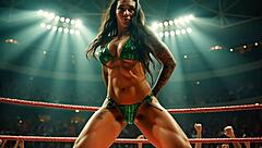 amazon wrestler shows off her flexing muscles bikini posing like a tall muscular fitness model