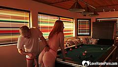 sexy ginger babe deepthroats and rides cock breaking billiard desk rules