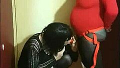 Collecting male nectar with deep ebony blowjob and lick