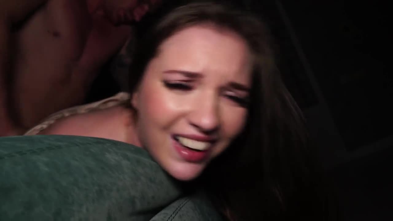 Semi-naked petite chick takes hardcore screwing in her stretched anus. Her small tits bounce wild!