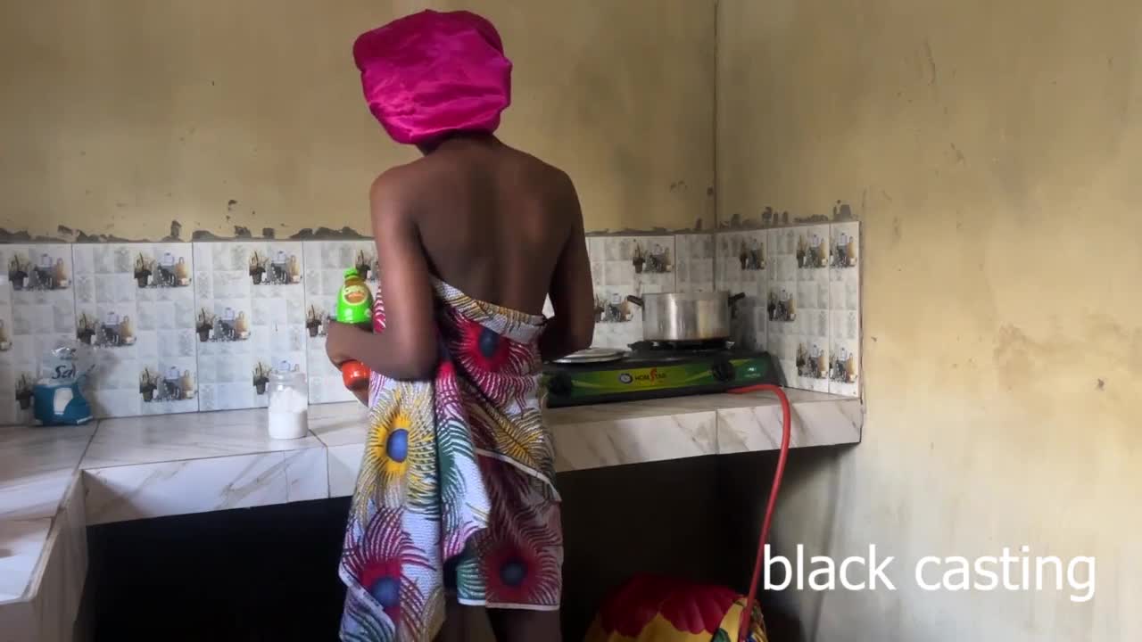 Hey, pounding my skinny maid's ass in kitchen while wife shops around