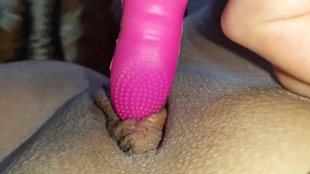 Extreme closeup of big clit licking with toy. Hairy pussy quivers during intense orgasm.