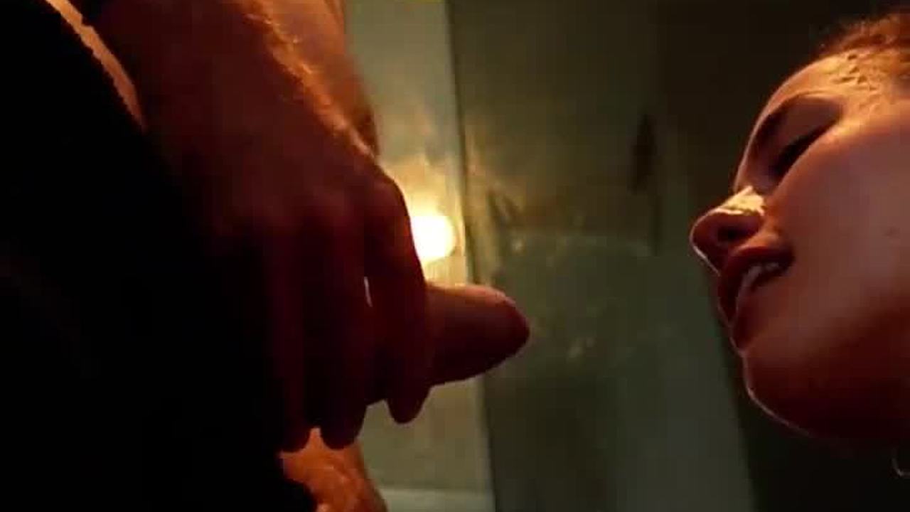 uhh hot blonde wife strokes cock with handjob blows it deep n swallows every drop