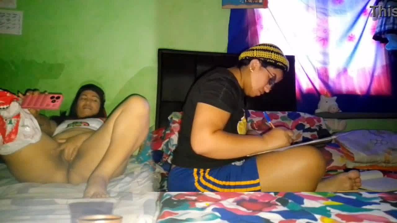 I rub my huge curvy ebony ass pussy while stepsis studies masturbating homemade pov
