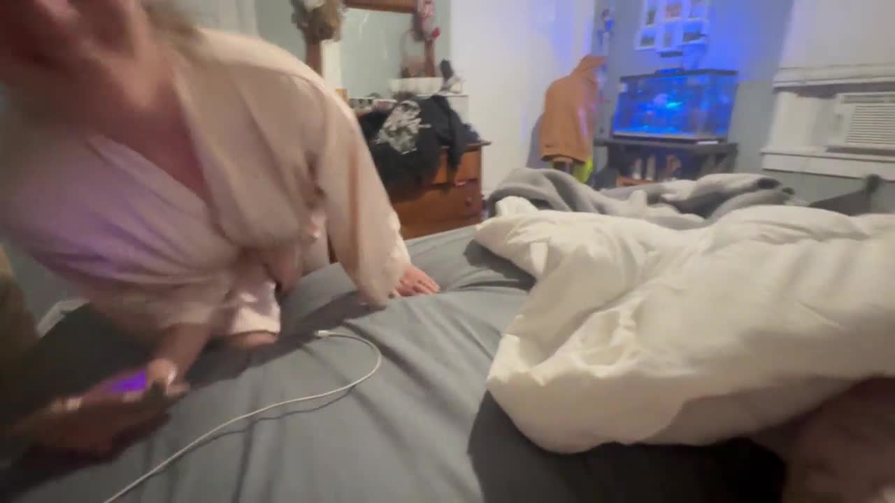 Stieftante betrapt hem terwijl hij aftrekt in de kamer. Ze doet stilletjes mee
