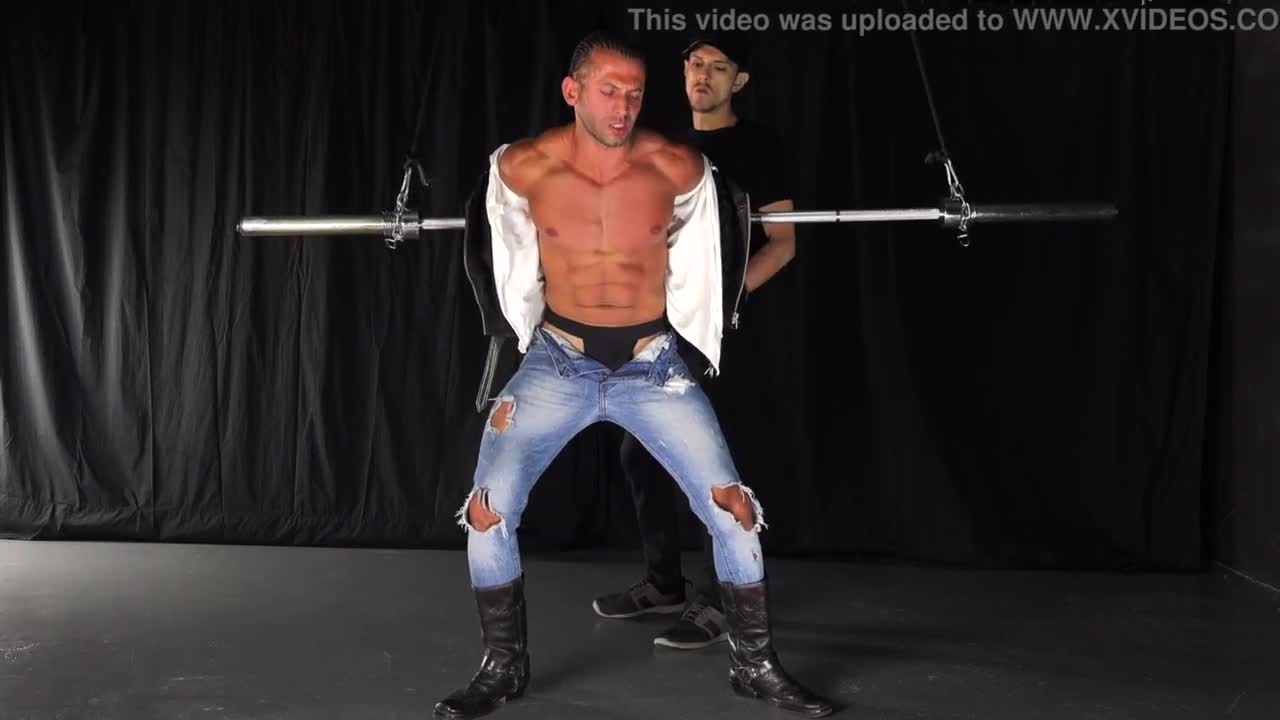 Straight muscle stud bound and whipped in gay bdsm